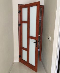Cửa được làm từ hợp kim nhôm là vật liệu có độ bền cao, chịu được sự ảnh hưởng của thời tiết khắc nghiệt như mưa, nắng, gió, hoặc độ ẩm cao. Khả năng chống ăn mòn của nhôm là điểm mạnh giúp cửa duy trì độ mới qua thời gian.